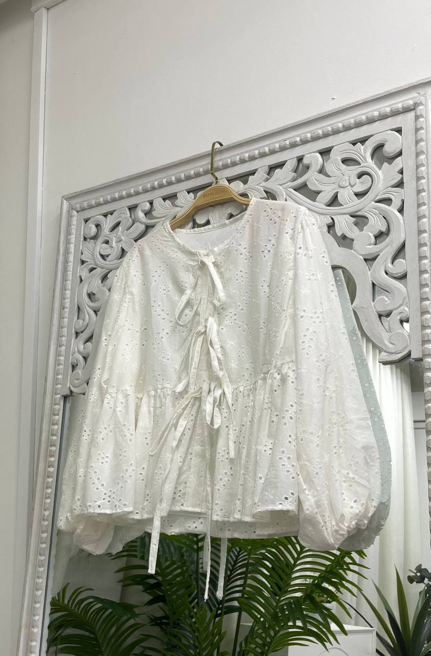 • Dahlia Eyelet Ribbon Top - Attached Lining